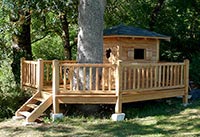 Chantiers réalisés. Cliquez sur l'image d'un chantier pour en afficher le détail. Création de deux observatoires en bord de lac. Conception d'un ponton de pêche. Réalisation d'une Pergolas sur terrasse en Bois. Réalisation d'un auvent 2 pans. Réalisation d'une cabane autour d'un chêne Réalisation d'un garage Réalisation d'un auvent 2 pans. Restauration d'une vieille maison